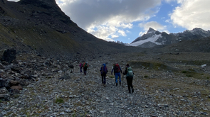 Es ging für uns weiter Richtung Tal, vorbei an Wasserfällen und über mäandernde Gletscherbäche, ehe wir wieder an der Wiesbadener Hütte ankamen. Hier gab es noch einmal Brotzeit oder wahlweise Kaffee und Kuchen. Den finalen Abstieg zurück zum Parkplatz begannen wir dann gegen 15:30 Uhr und läuteten damit das Ende eines tollen Wochenendes ein. Etwas mehr als eine Stunde später am DAV-Bus angekommen, war das Fazit für jeden eindeutig: Die Rucksäcke waren um den Proviant erleichtert, und die wunderbaren Impressionen und Momente im Herzen haben sich gemehrt.