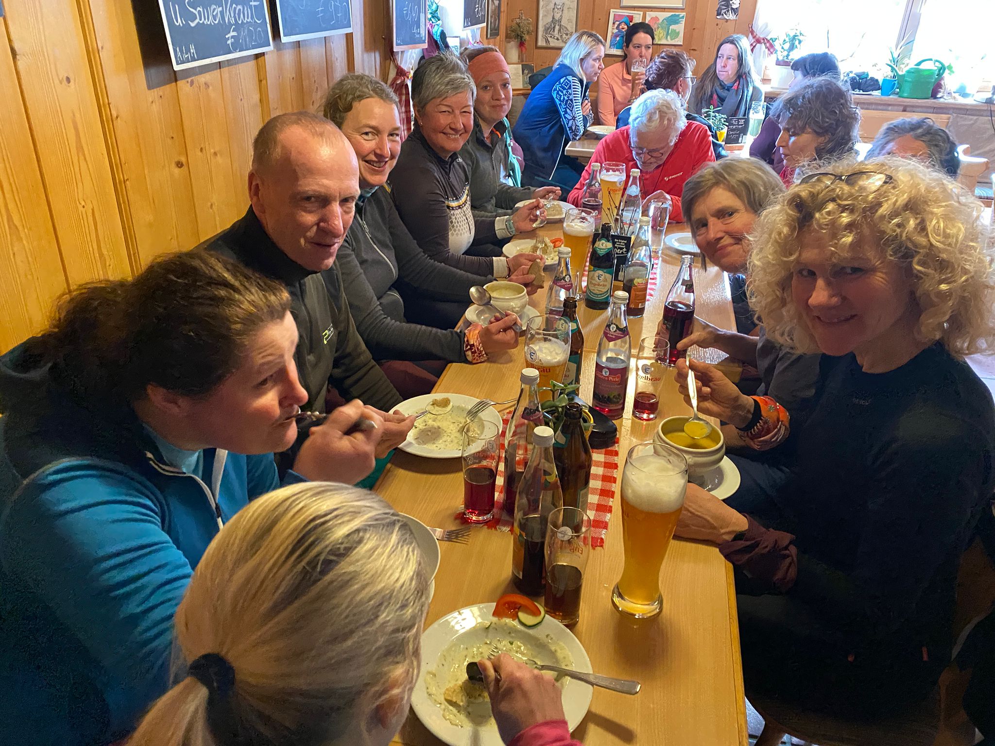 Fazit: Auch wenn die Schneeschuhe an diesem Tag auf dem Rucksack blieben und die Stirnlampe nicht zum Einsatz kam, war es wieder eine tolle Tour mit netten Leuten.