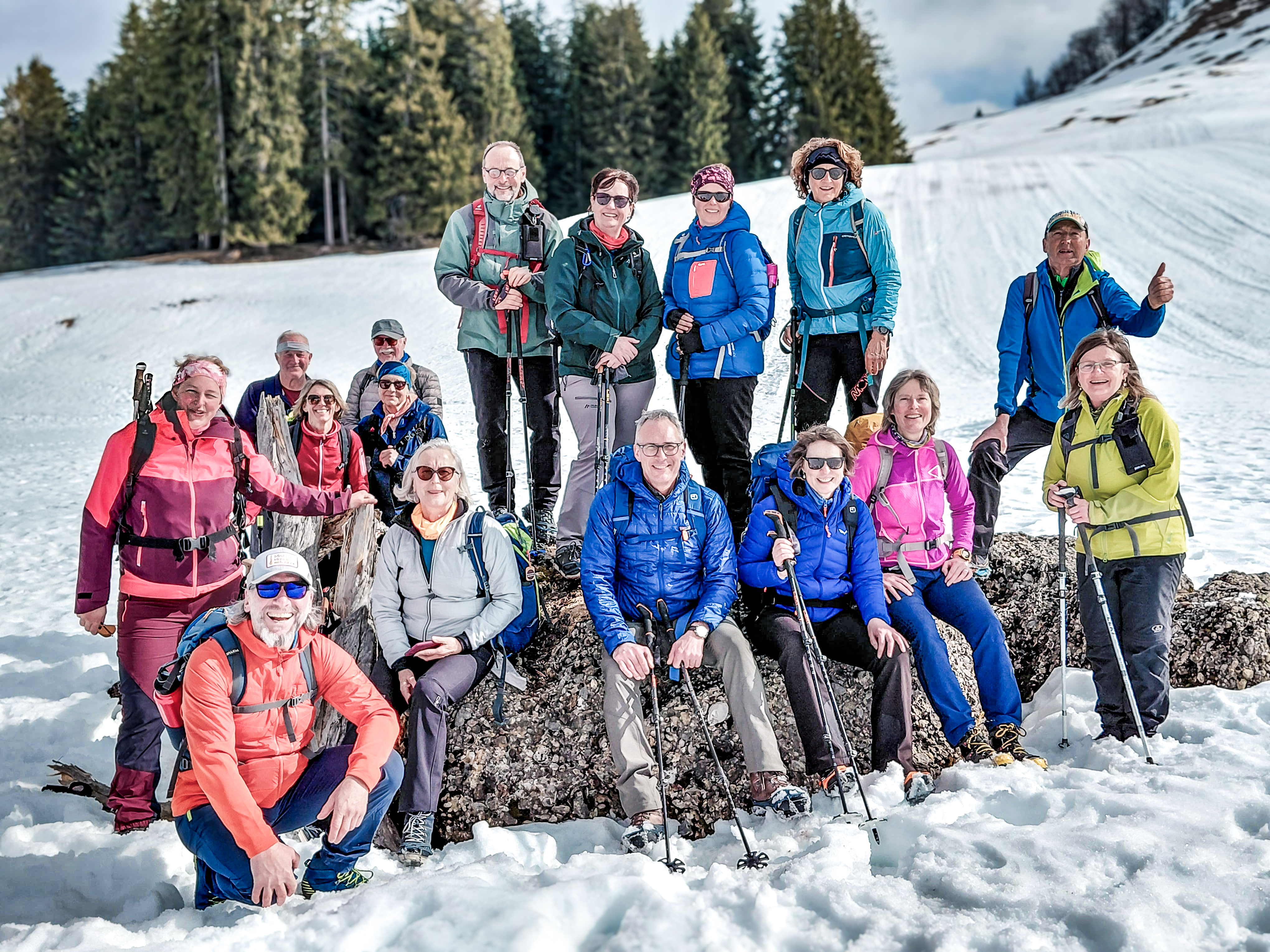 Den 16 Teilnehmern hat die Tour gut gefallen, da einige dieses Gebiet um Steibis noch nicht kannten. Am Ende des Tages zeigt unsere Uhr 13,5 km, 578 hm in 4,50 Std. an.